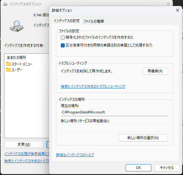 - スタートメニューで「インデックス」と検索