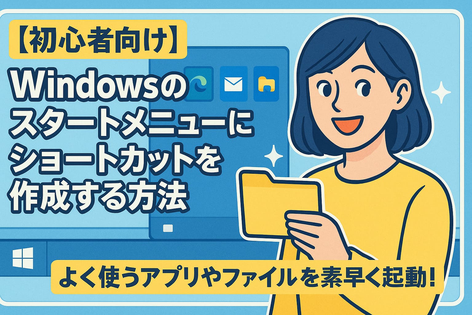 この記事では、Windows 10/11対応で、スタートメニューにショートカットを作る方法を、初心者の方にも分かりやすく説明していきます。