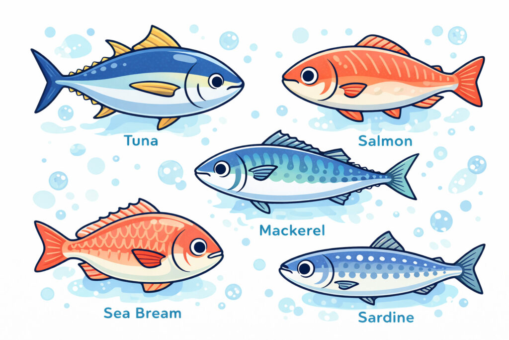 | 硬骨魚類(海水) | マグロ、カツオ、タイ、サバ、アジ | 食用として一般的 |