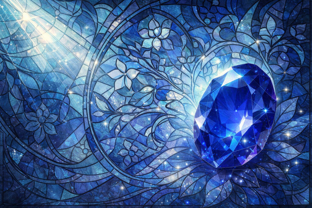 深い青色が知性と誠実さを象徴するサファイア。