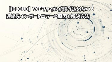 icloud 【iCloud】VCFファイルが読み込めない!連絡先インポートエラーの原因と解決方法 「VCFファイルをiCloudに読み込もうとしたら、エラーが出た」「連絡先をインポートしたのに、何も追加されない」「『ファイルを読み込めません』と表示される」機種変更やバックアップから連絡先を復元しようとして、こんなトラブルに遭遇していませ... icloudプログラミング・IT