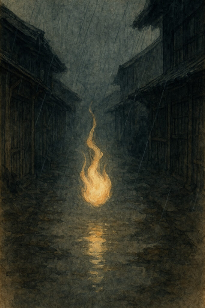 しかし、近づいてみると人の姿はなく、ただ火だけが宙に浮いている…。