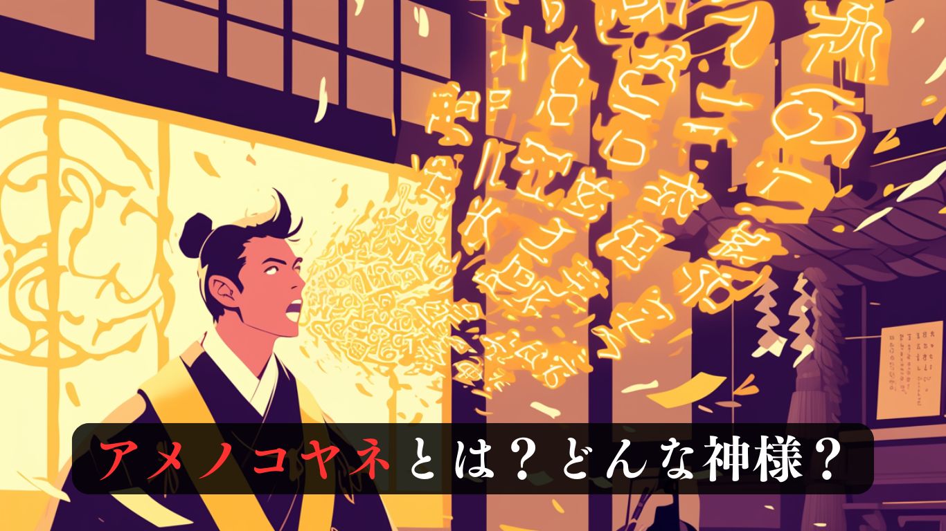 アメノコヤネは、天岩戸隠れで祝詞をあげアマテラスを褒め称えた神様。