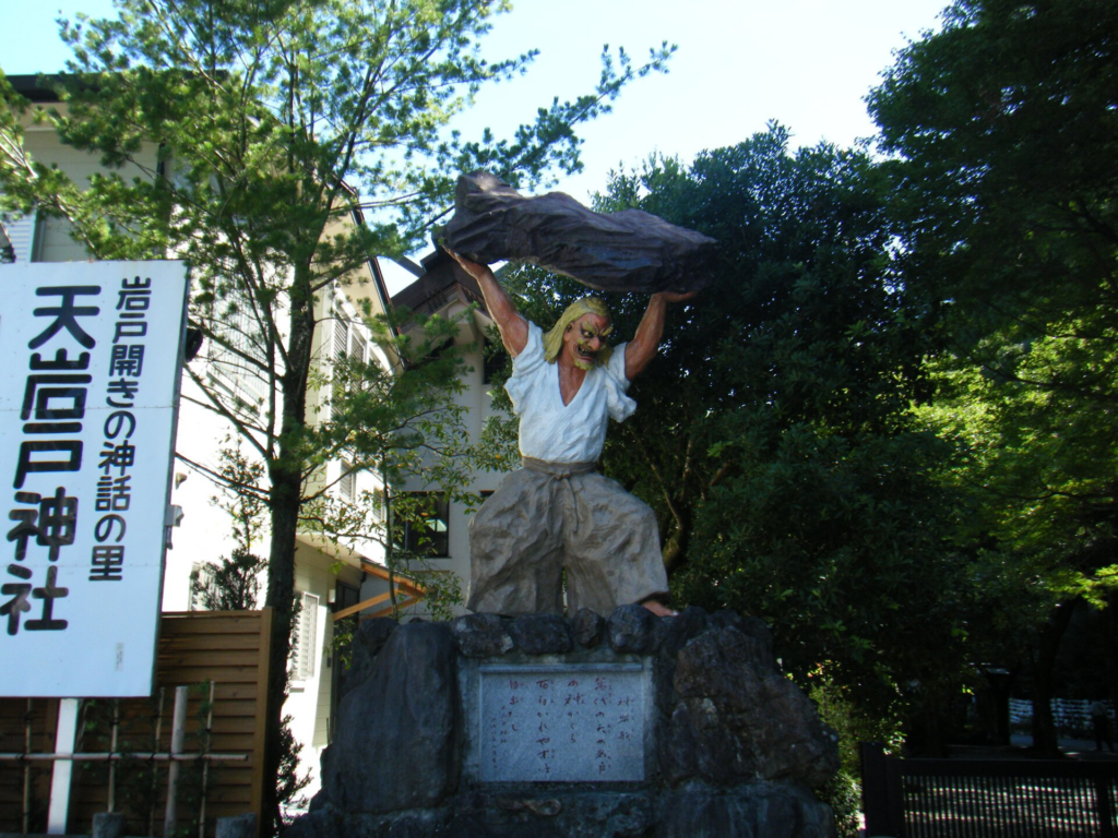 天岩戸隠れに登場し、天岩戸をこじ開けアマテラスを引っ張り出した。