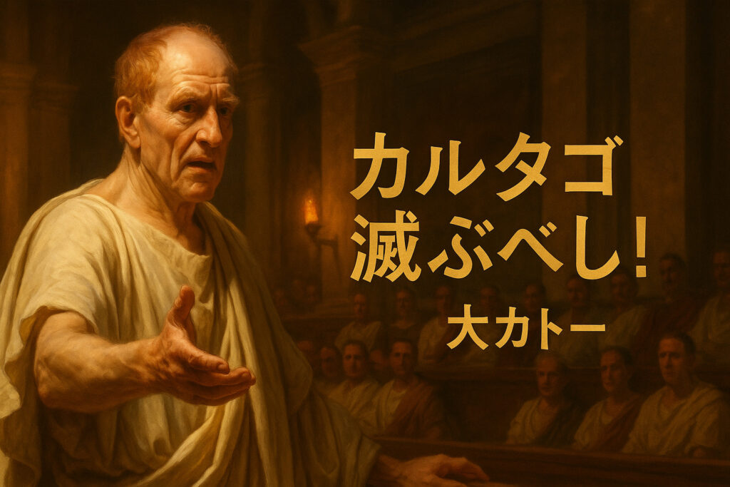以後、カトーはあらゆる演説の最後に、話題が何であれ必ず「それにしても、カルタゴは滅ぼされるべきである(Ceterum censeo Carthaginem esse delendam)」という言葉を付け加えました。