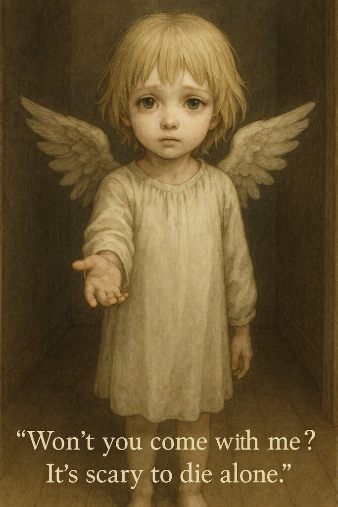 あの世に連れていかれると思った少女は「私はまだ死にたくない!」と叫びました。すると、キューピッドさんは「ほんとう?ありがとう。さようなら」と言って消えてしまったそうです。