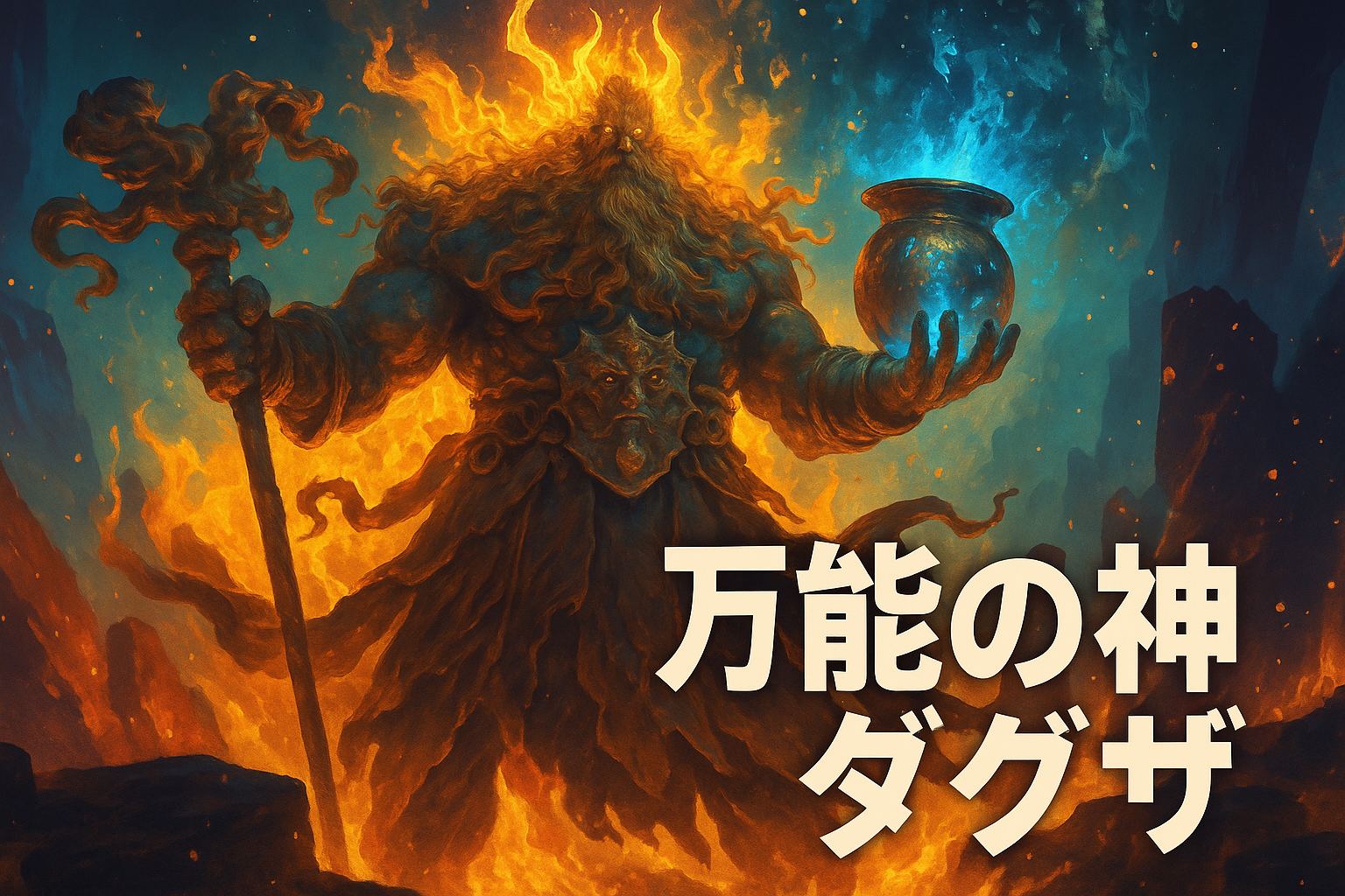 ダグザは、ケルト神話で生命・大地・再生などのすべてを兼ね備えた神さまです。