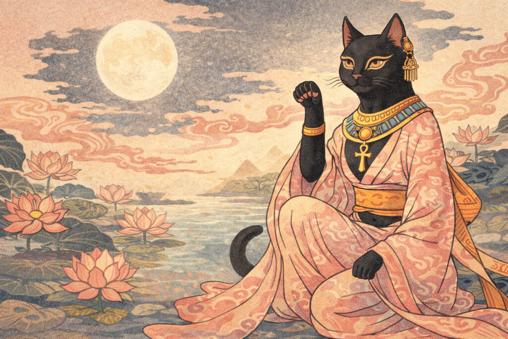当初はライオンの頭を持つ獰猛な姿で描かれていましたが、時代とともに優しい家猫の姿へと変化していきます。