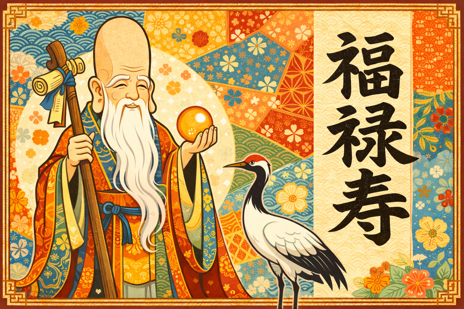 福禄寿は、七福神の一柱として日本で親しまれている福の神です。