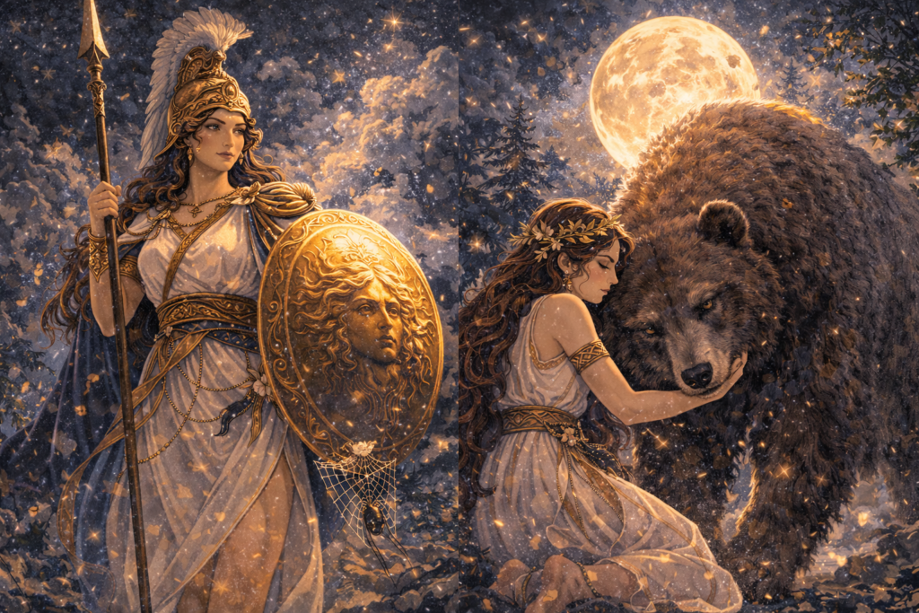 颯爽とした狩人と、豊穣の母神。