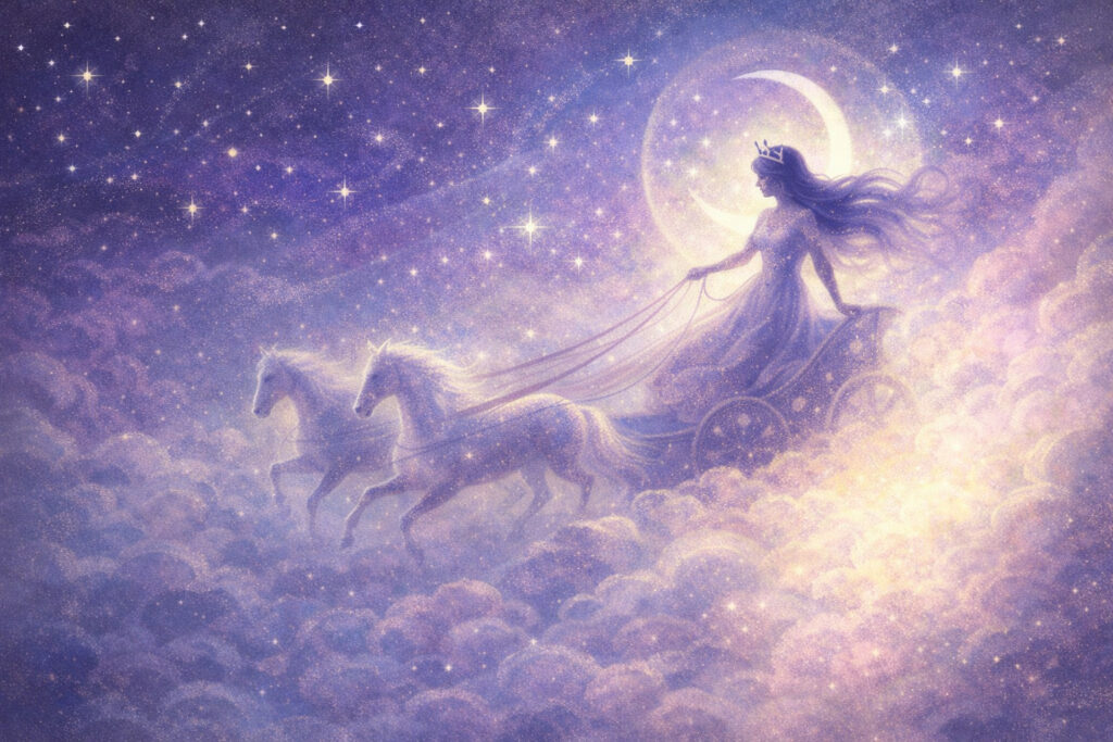 次に夜空を見上げるとき、月の女神セレネが銀の馬車を走らせる姿を想像してみてはいかがでしょうか。