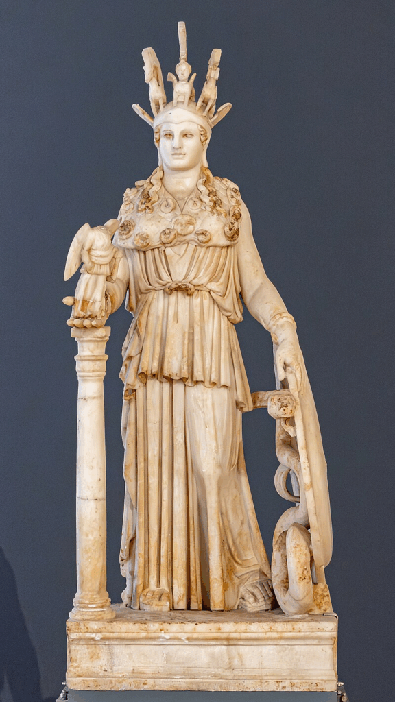 残念ながら原作は失われてしまいましたが、ローマ時代の模刻がアテネ国立考古学博物館で見ることができます。これが知恵の女神アテナの「標準的な姿」を決定づけたんですよ。
