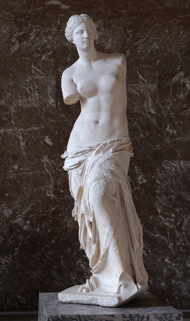 紀元前2世紀の作品で、1820年にミロス島で発見されました。高さ2メートル以上のこの美しい彫刻は、モナ・リザ、サモトラケのニケと並ぶルーヴルの三大名品の一つです。