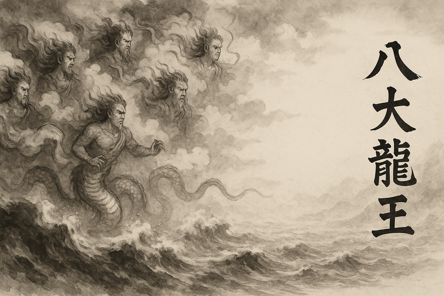 釈迦が法華経を説いたとき、その教えを聴くために集まった龍の王たちとされています。彼らは仏法を守護する「天龍八部衆(てんりゅうはちぶしゅう)」という護法神グループの一員でもあります。