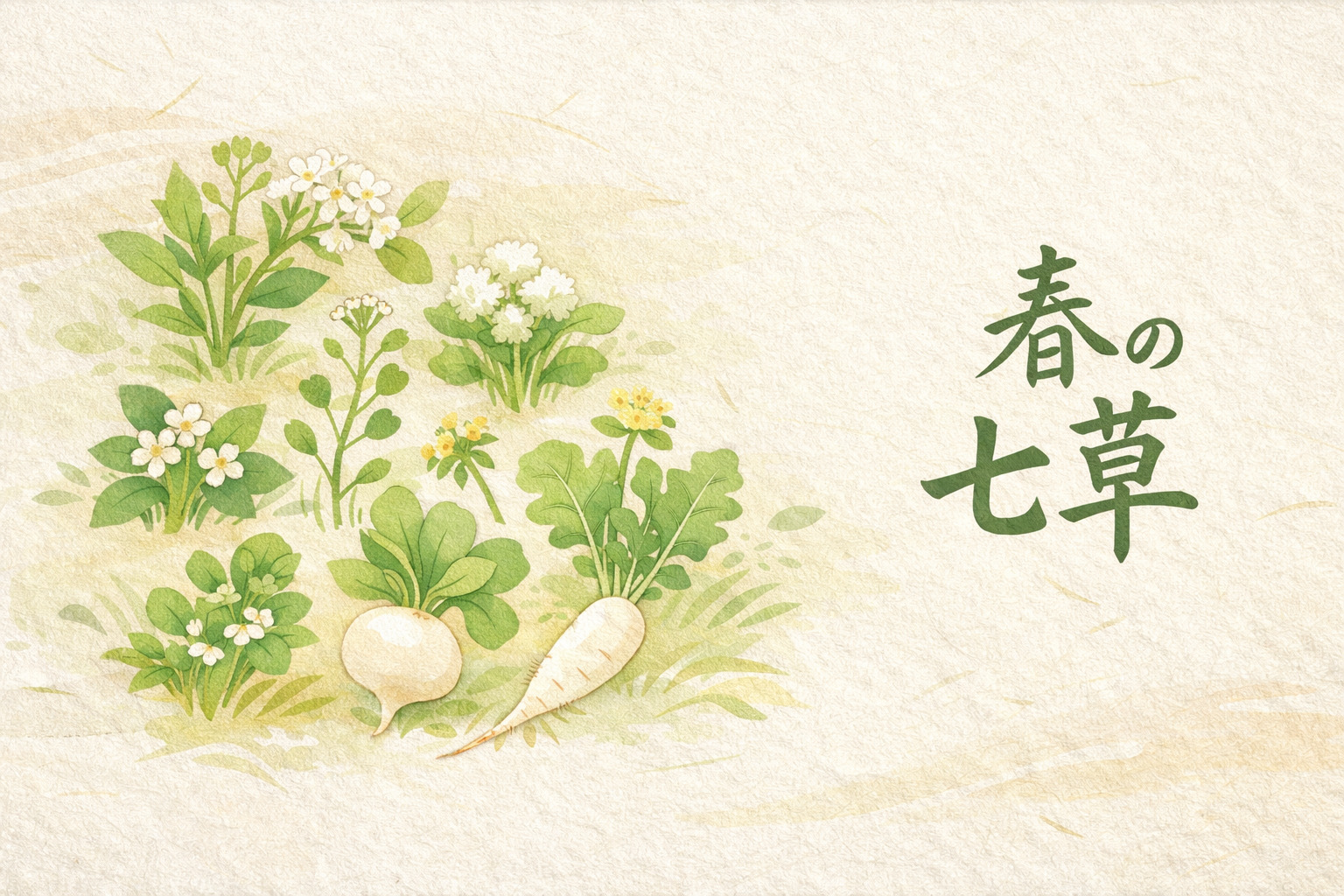 春の七草は、1月7日の「人日の節句(じんじつのせっく)」に食べる7種類の野草のことです。