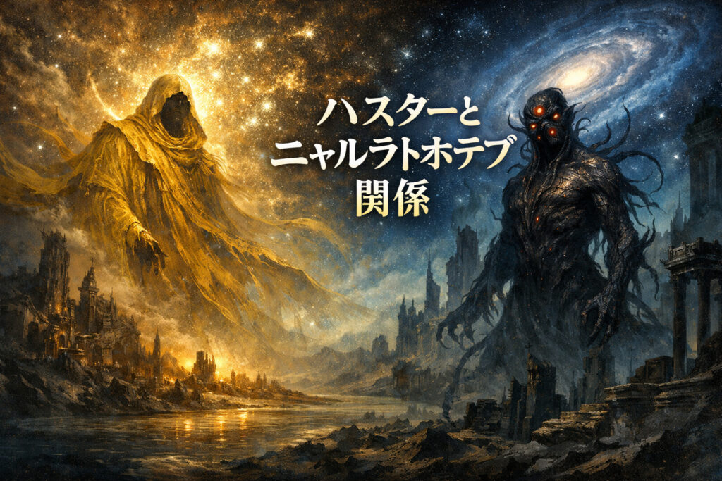 この記事では、クトゥルフ神話を代表する二大邪神「ハスター」と「ニャルラトホテプ」の関係性について、共通点や相違点を分かりやすく解説していきます。