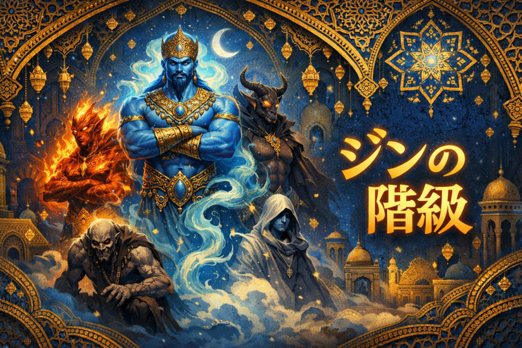 この記事では、イスラム神話に登場するジンの階級と種類について、それぞれの特徴や伝承とともに詳しくご紹介します。
