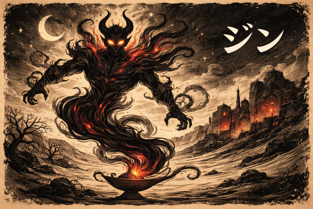 この記事では、イスラム神話に登場するジンの種類や特徴、階級構造について、わかりやすく解説していきます。