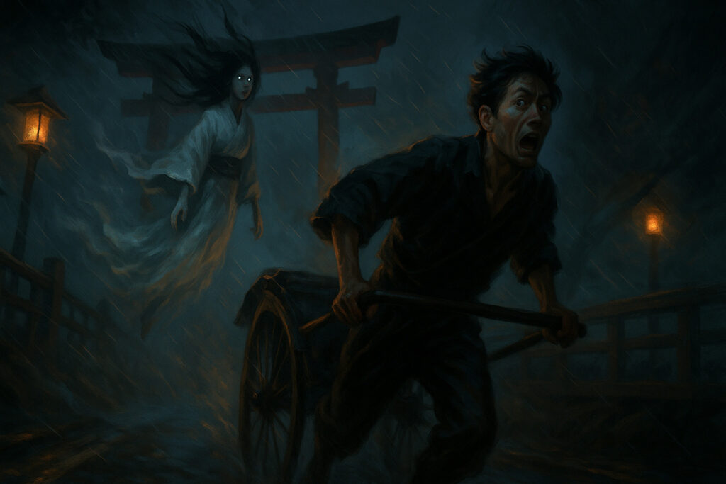 夜道で人力車を引いていると、橋のたもとに立つ女性が手招きをしている…