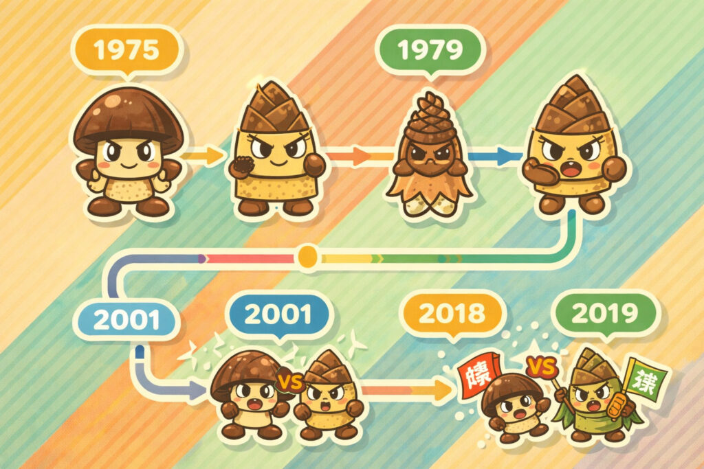 きのこの山とたけのこの里の歴史を振り返ると、こんなことがわかります。