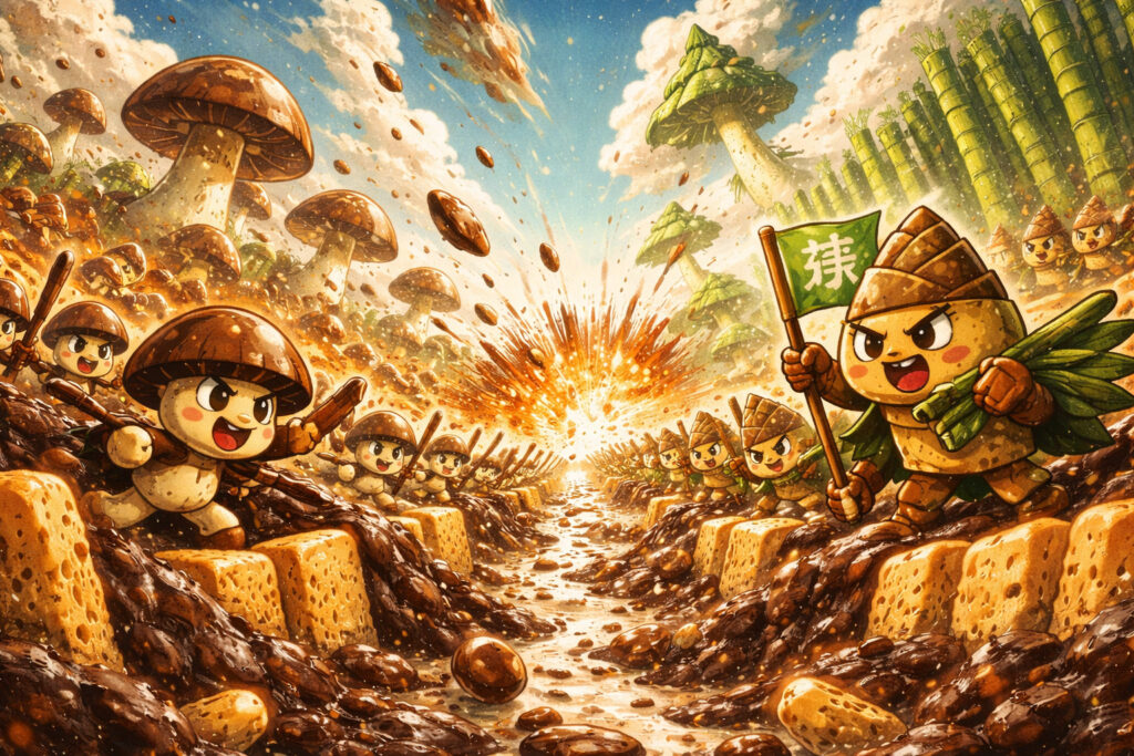 この記事では、きのこの山とたけのこの里の誕生秘話から、消えた幻の第三勢力「すぎのこ村」、そして今も続く「きのこたけのこ戦争」の歴史まで、たっぷりお伝えします。