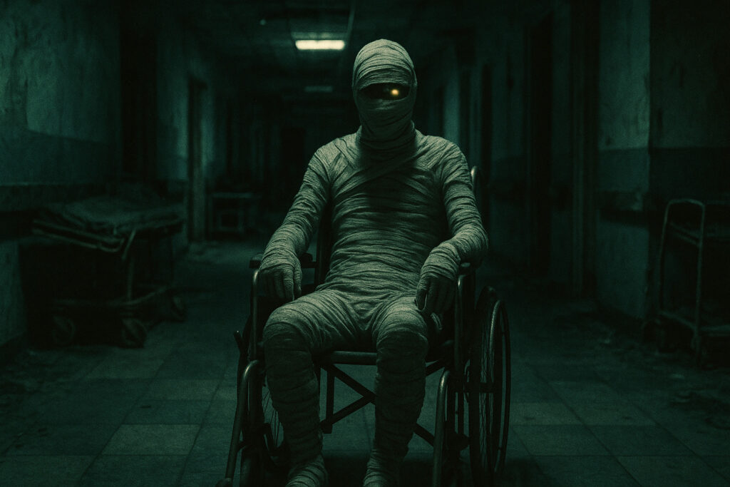 - 見た目:全身包帯でぐるぐる巻き、片目だけが見える状態