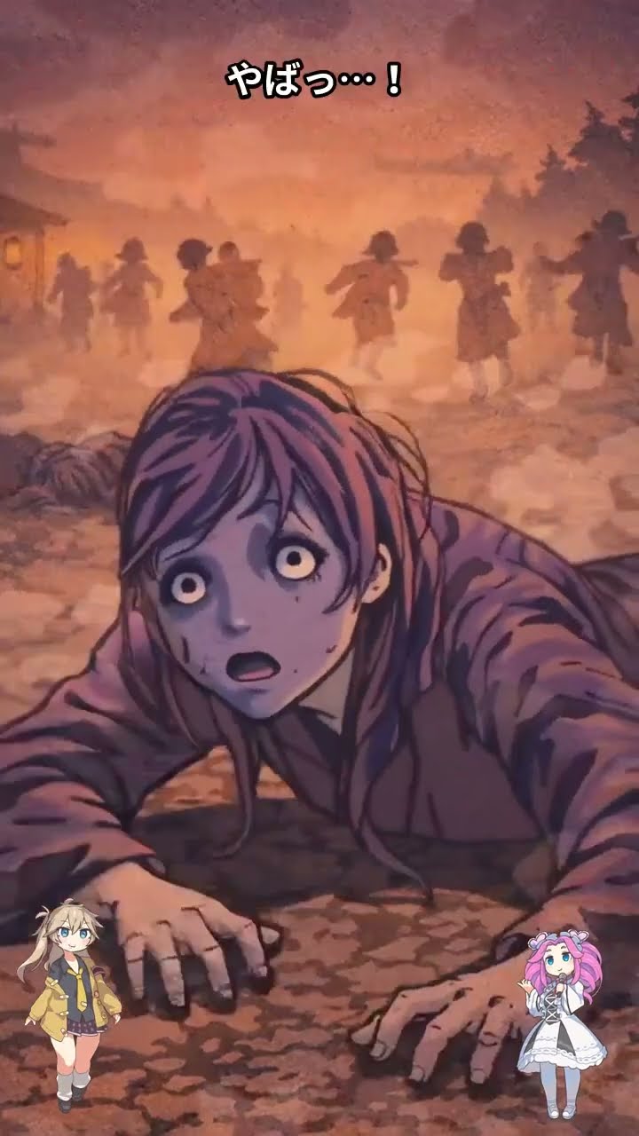 この説明を聞いた直後、少女の一人が死体につまずいて転んでしまいます。すると、その少女は悲鳴を上げながら、みるみるうちに青紫色の死体に変わってしまうという、ゾッとする光景を目撃することになるんです。