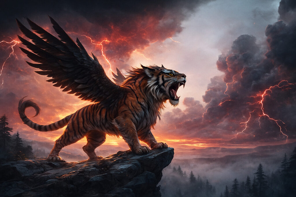 • 翼のある虎、または針鼠の毛の牛の姿