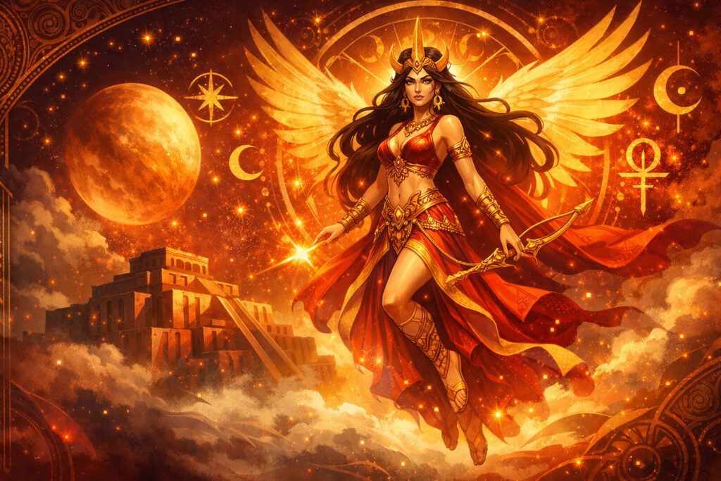 美しさと情熱、そして戦いの激しさを象徴し、最高神アヌや権力者エンリルと同等の権力を持っていました。