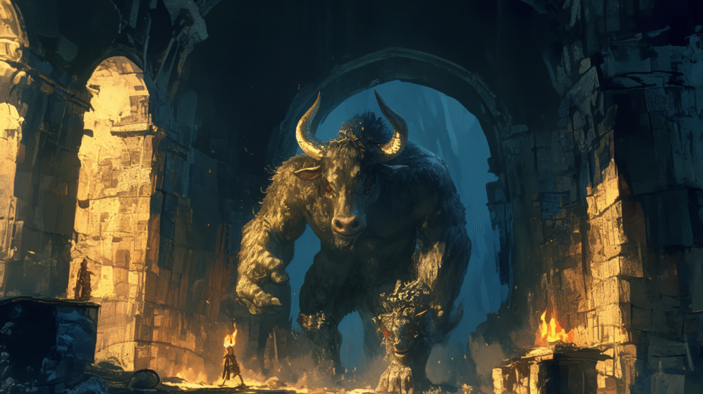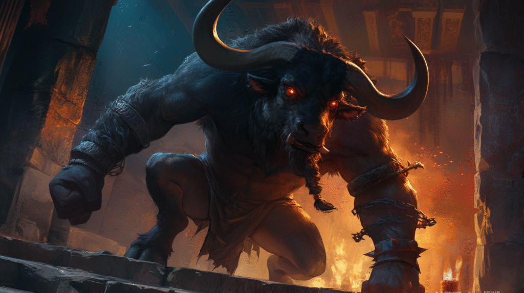 その声の主は、牛の頭を持ち、人間の体を持つ恐ろしい怪物…そう、それは「ミノタウロス」かもしれません。