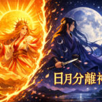 太陽の神・天照大御神(アマテラスオオミカミ)が、弟・素戔嗚尊(スサノオ)の乱暴に怒って天岩戸に引きこもってしまったとき、世界は真っ暗闇になりました。
