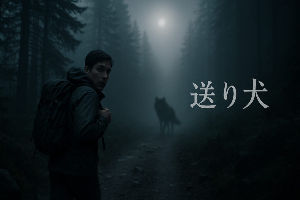 送り犬は、夜の山道を歩く人の後をぴったりとついてくる犬の姿をした妖怪です。