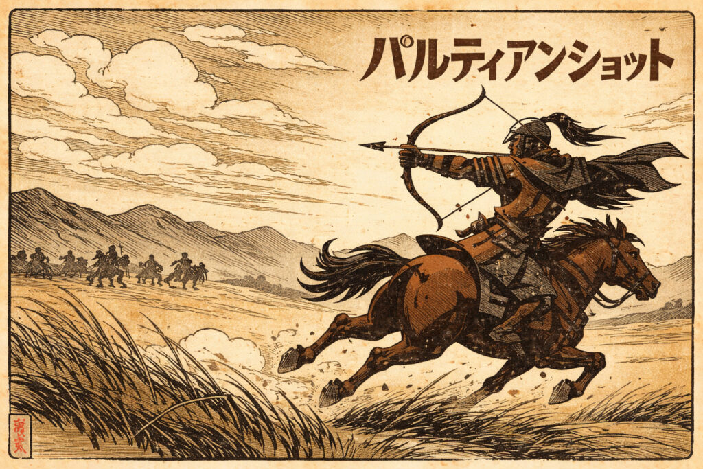 退却しながら最後の一撃を放つパルティアの弓騎兵の姿が、2000年以上の時を超えて現代の日常会話に残っているのは、実に興味深いことです。