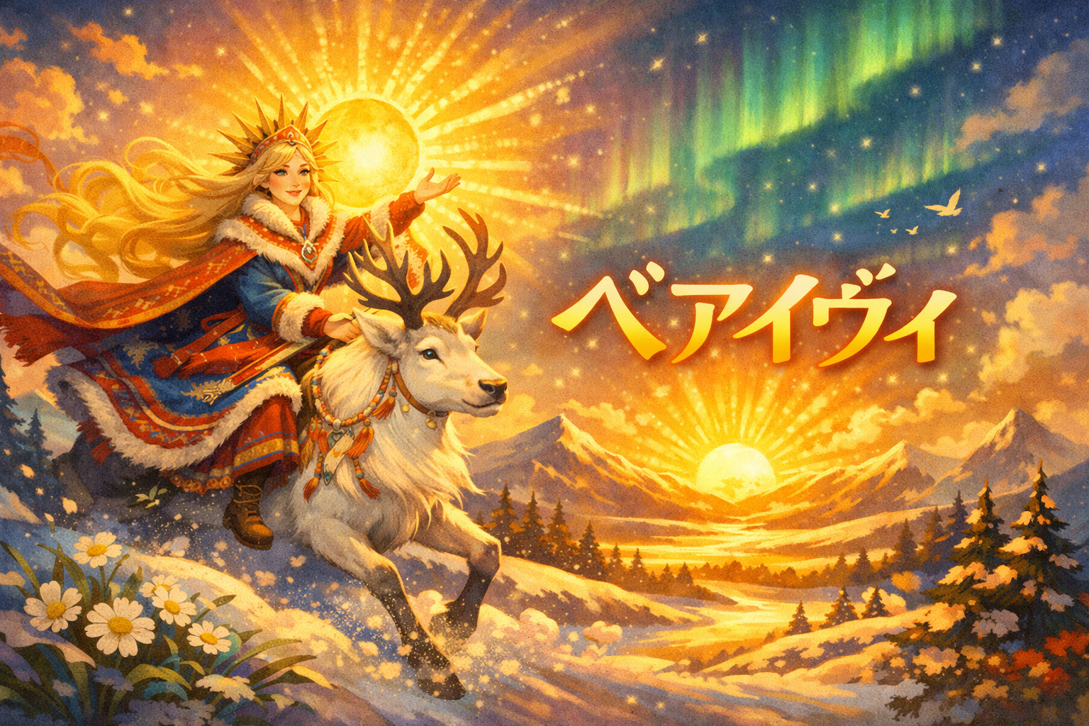 ベアイヴィは、サーミ神話における太陽の女神であり、生命、春、豊穣、そして精神の健康を司る存在です。