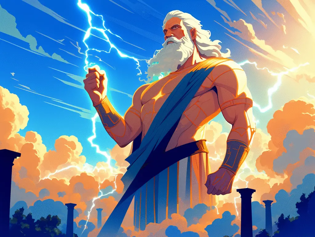 ギリシャ神話の最高神として、オリュンポス山の頂上から世界を見守っていました。天空と雷を支配する、まさに神々の王様です。