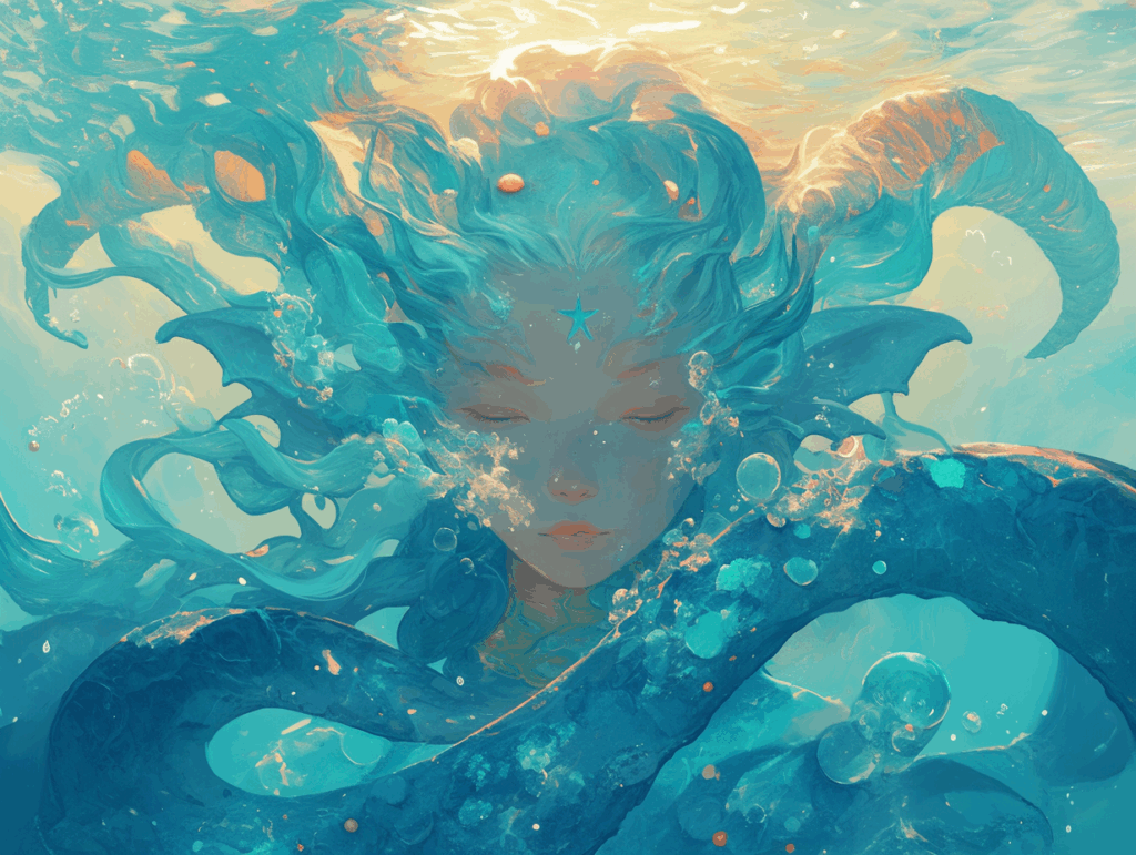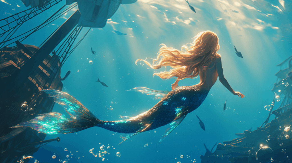 人間の上半身と魚の尾を持つ、美しい半人半魚の存在です。