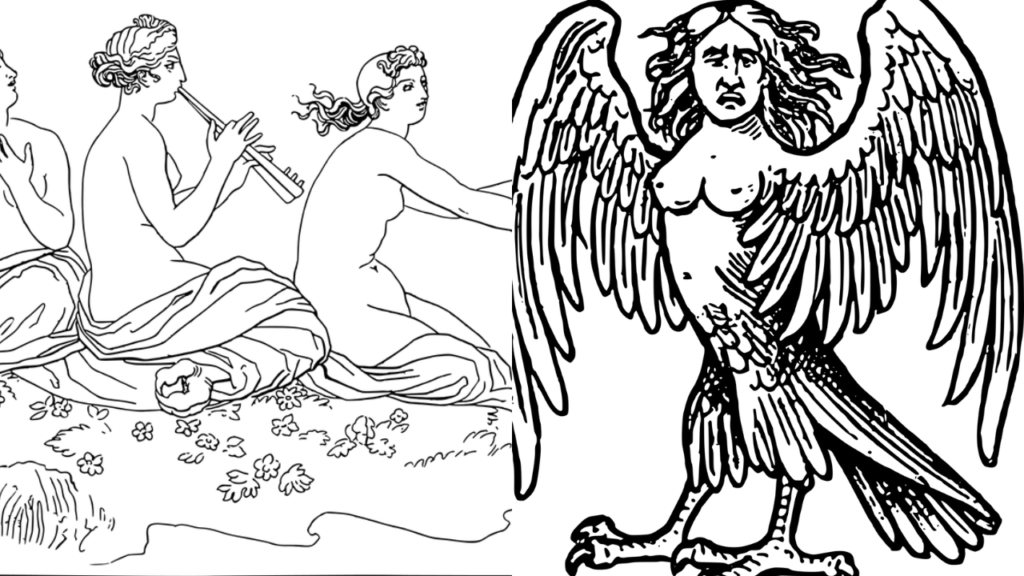 - ハーピーは空から人間をさらう地上の怪物、セイレーンは歌声で人間を惑わせる怪物