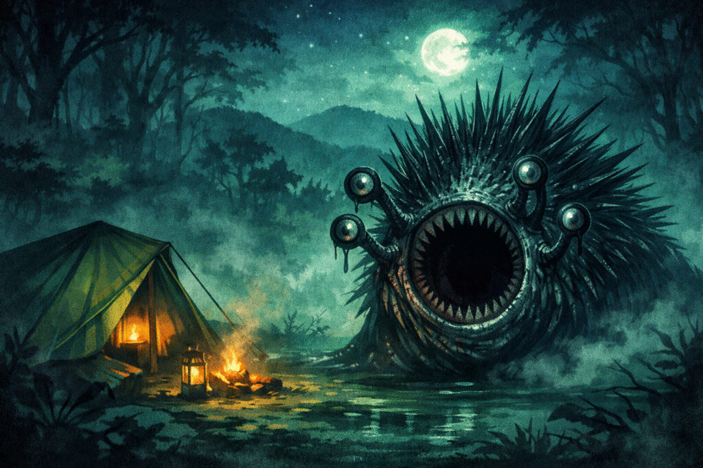 テントの外をうかがうと、そこには針のような毛に覆われた巨大なナメクジのような「何か」がいた——。