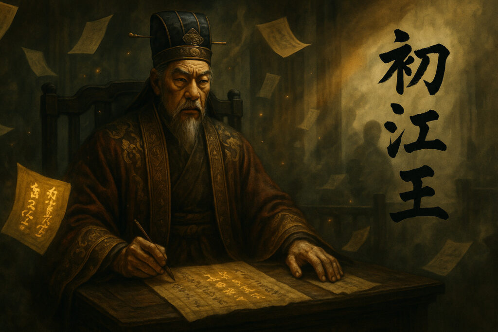 初江王(しょこうおう)は、仏教や道教の世界で死者を裁く十人の王様「十王」の二番目の裁判官です。