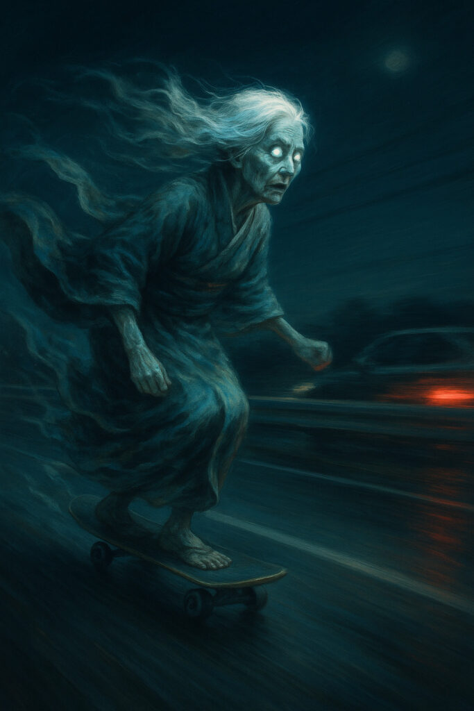 もし深夜の高速道路で、スケボーの音が聞こえたら…それは彼女からの警告かもしれません。絶対に飲酒運転はやめましょう。それが、スケボーババアからの最も重要なメッセージなのですから。