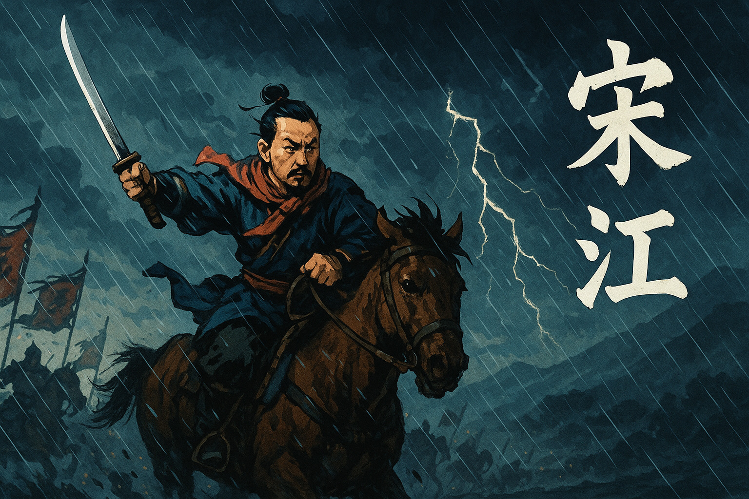 宋江(そうこう)は、中国の四大奇書『水滸伝』の主人公であり、108人の豪傑たちのリーダーです。
