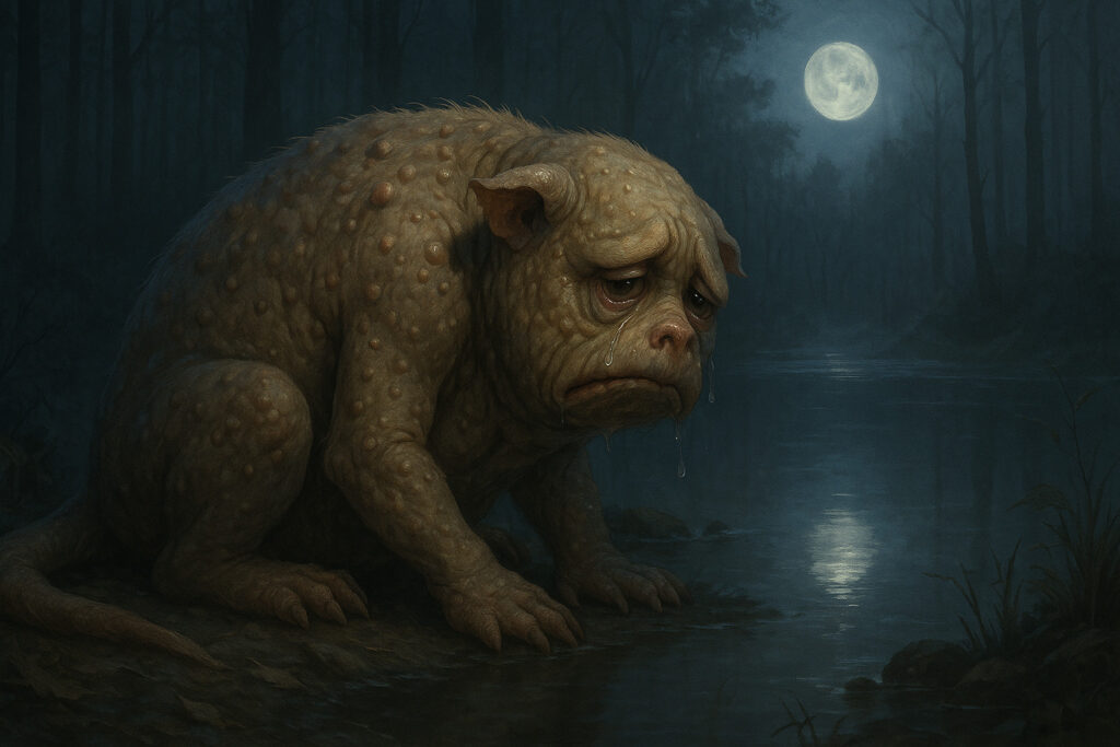その醜さは尋常ではなく、スクォンク自身が一番よく分かっているといいます。特に月明かりの夜は、水面に映る自分の姿を見ないように必死で避けて歩くんだとか。