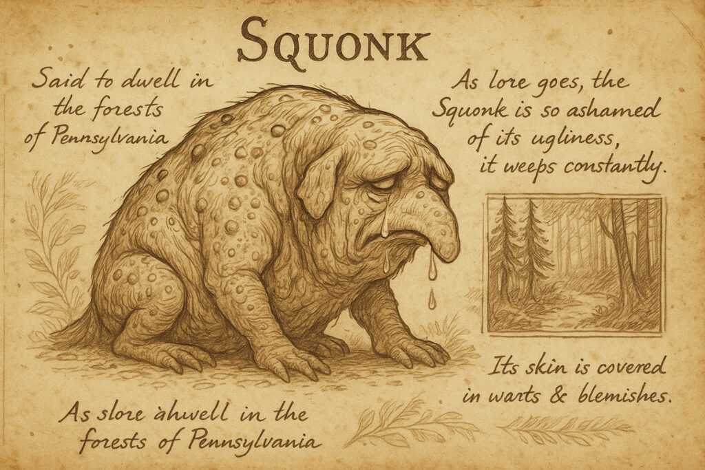 スクォンクは、アメリカのペンシルバニア州北部の森に住むといわれる伝説の生き物です。