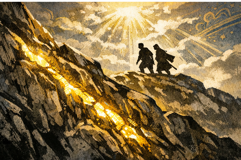 二人が山に行くと、本当に黄金がたくさんありました。