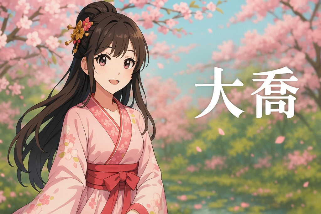 揚州の名士である橋公(きょうこう)の娘で、妹の小喬とともに「江東の二喬」として知られています。正史『三国志』では「大橋」と表記されており、「大喬」という表記は小説『三国志演義』で使われるようになりました。