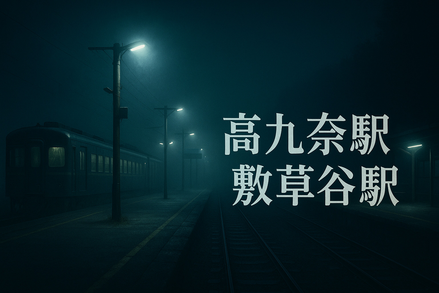 2010年頃からインターネット上で語られるようになった「高九奈駅(たかくなえき)」と「敷草谷駅(しきさやえき)」は、一度迷い込んだら二度と戻れないかもしれない恐怖の異界駅として知られています。