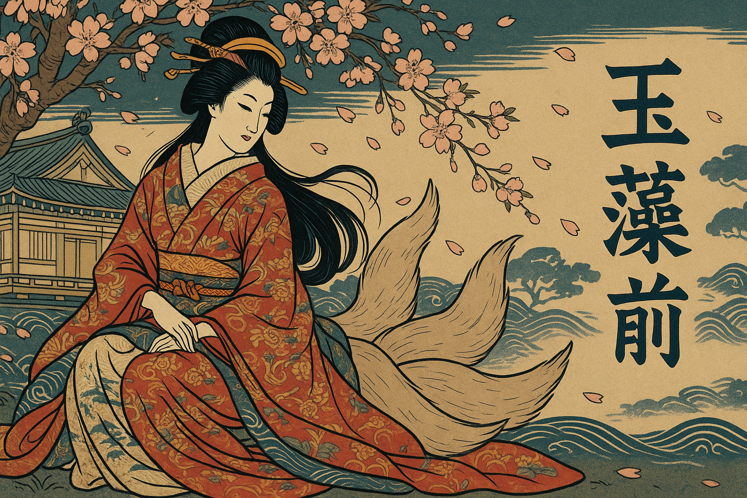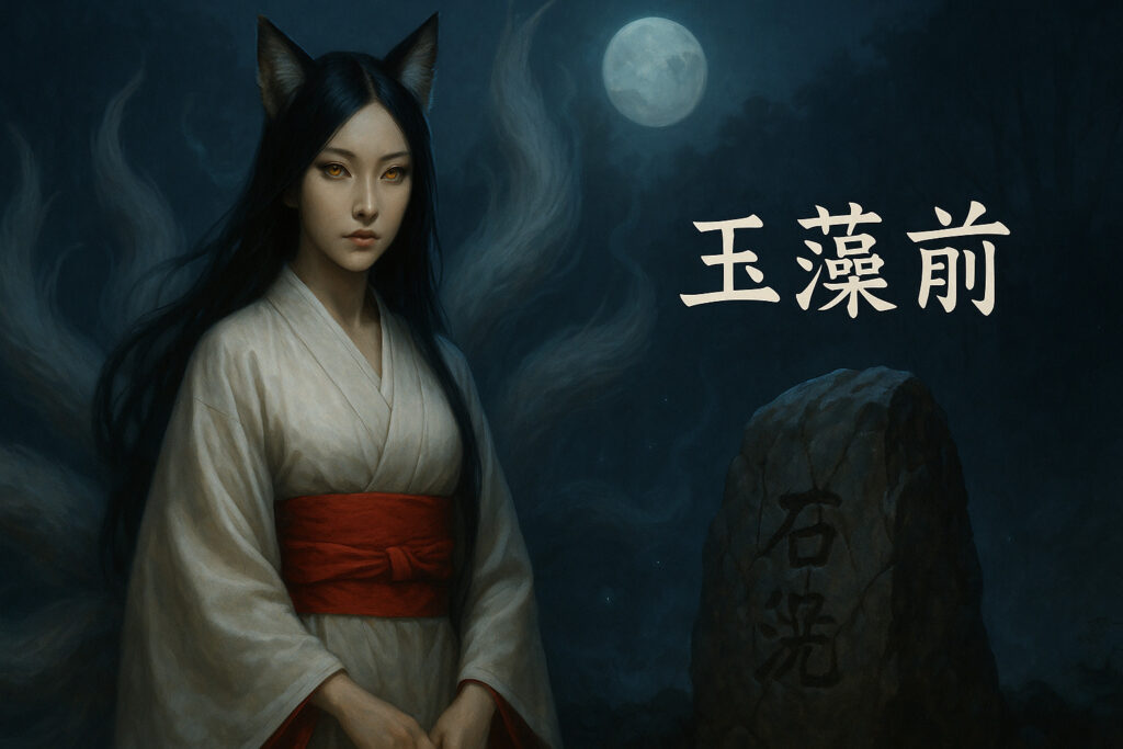 その正体は 妖狐(ようこ) ――つまり、人を化かす狐の妖怪でした。陰陽師の安倍泰成(あべのやすなり)に正体を見破られた後、下野国(しもつけのくに)の那須野原(現在の栃木県那須郡周辺)に逃れ、最後は 「殺生石(せっしょうせき)」 という毒石に姿を変えたと伝えられています。
