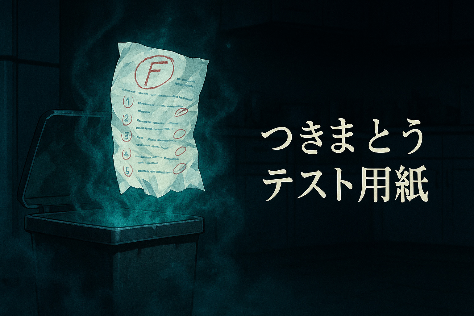 つきまとうテスト用紙は、学校生活の日常に潜む不条理な恐怖を描いた怪談です。