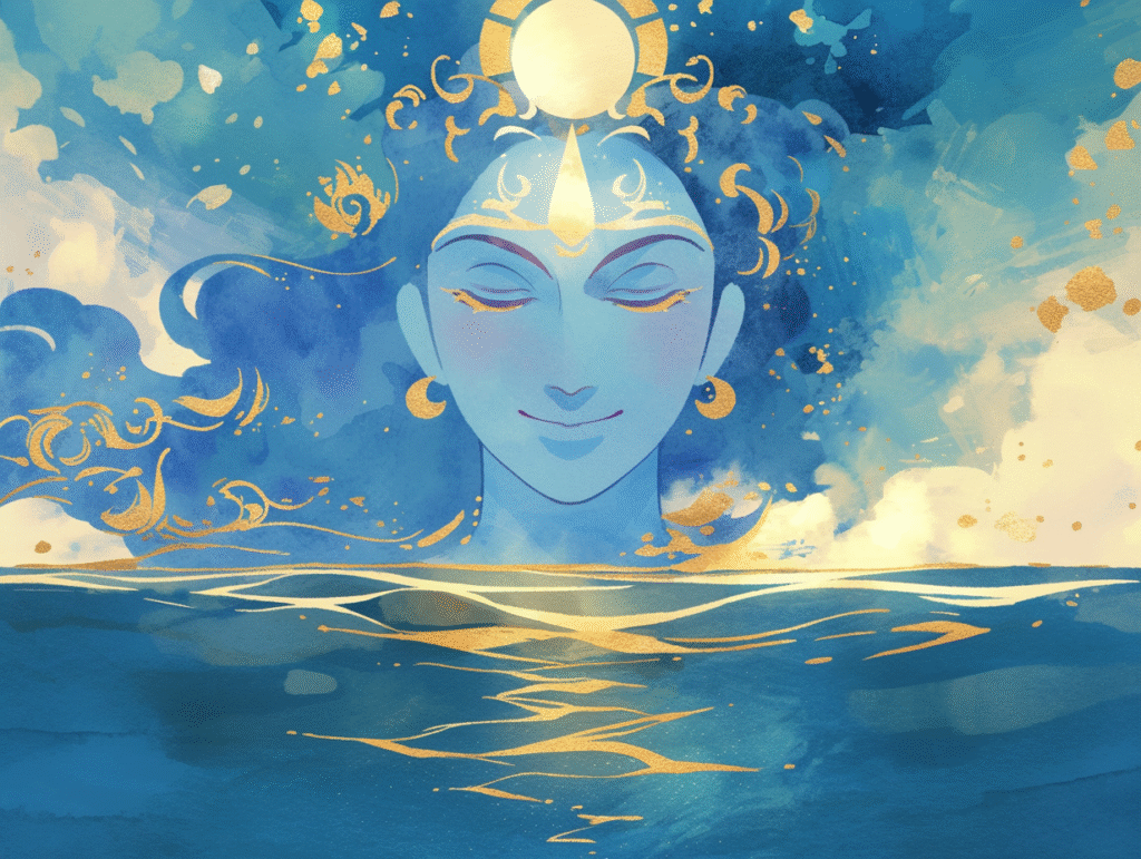 また、ヴィシュヌはしばしば「アナンタ」という巨大な蛇の上に横たわる姿で描かれることもあります。