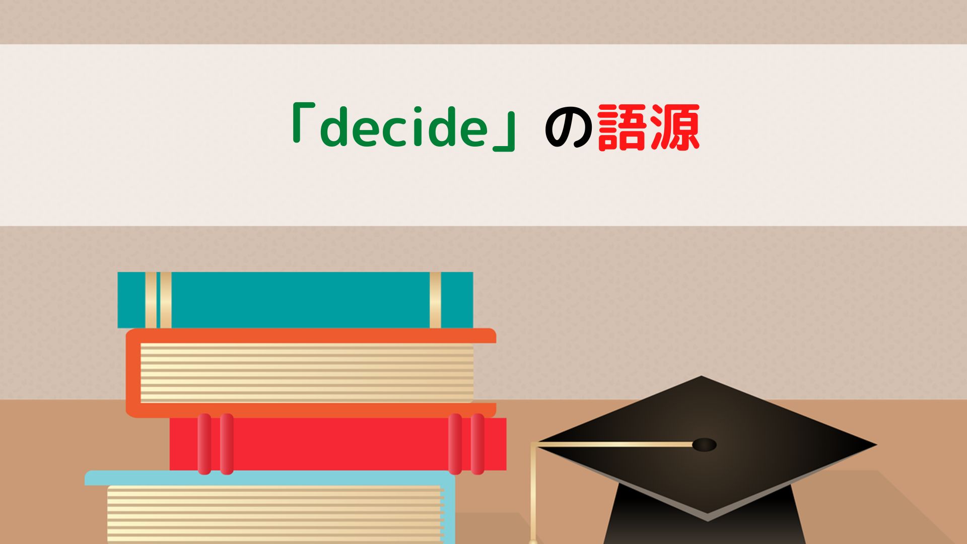 1つの単語になることで、2語の意味が組み合わさり、「decide」の語源は「断ち切る」となります。